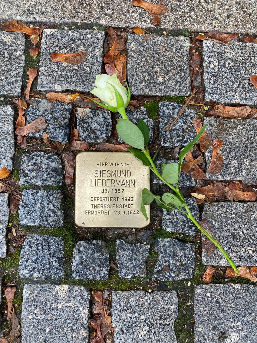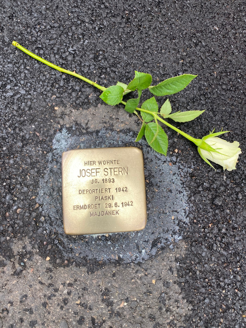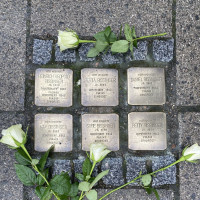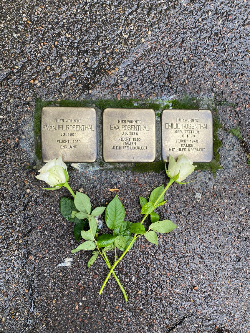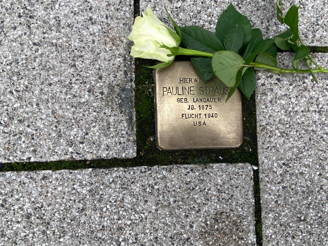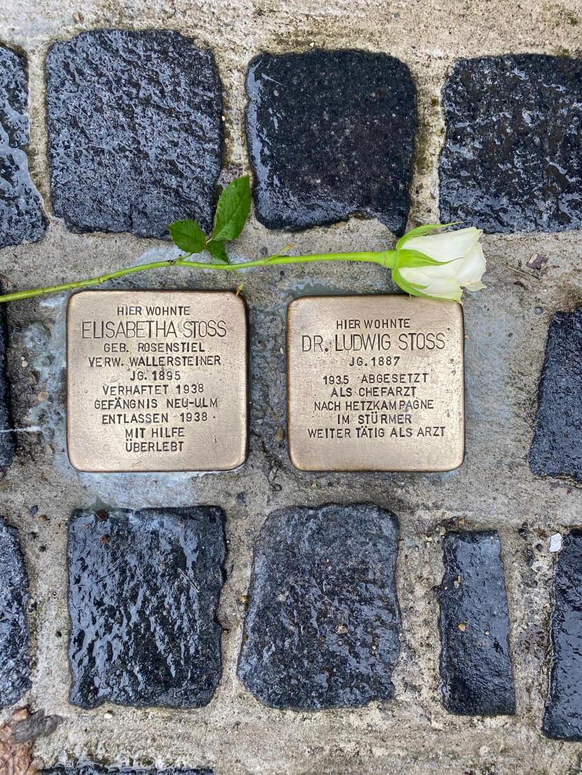 Auf ihrer Route besuchten die Teilnehmerinnen und Teilnehmer auch die Stolpersteine der Familie Bissinger, die seinerzeit von Ulrich Seitz, ehemaliger SPD-Stadtrat, gestiftet wurden.
